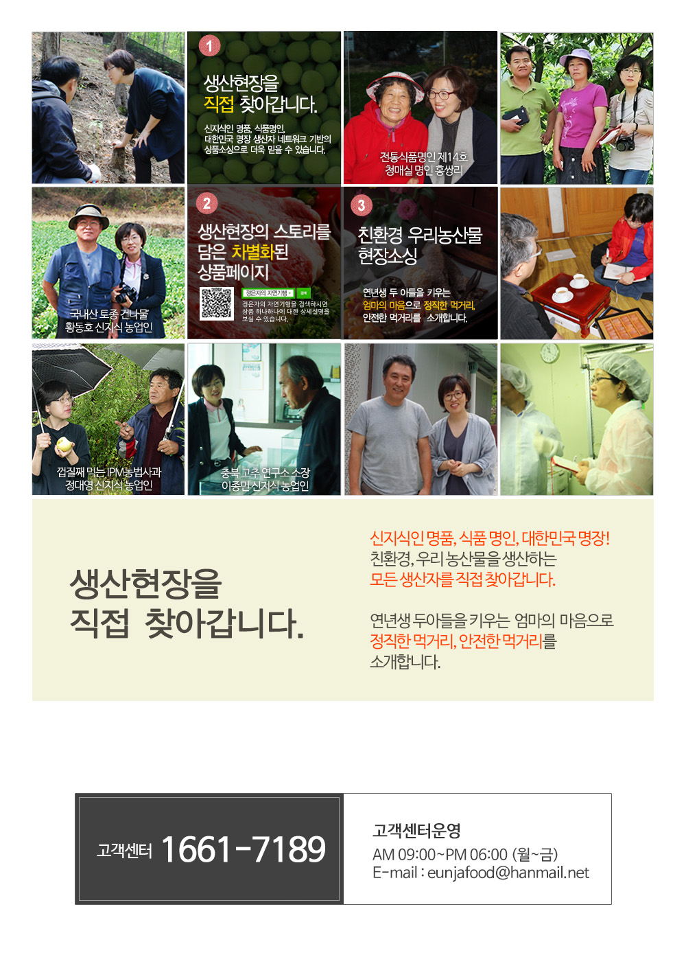 고객센터 : 1661-7189 FAX : (주)정은자의자연기행 Email : eunjafood@naver.com