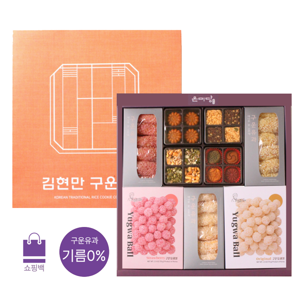 유과(찹쌀,복분자딸기,단호박,),유과볼(딸기,조청),미니약과,4색강정(백년초,단호박,녹차,현미),산자