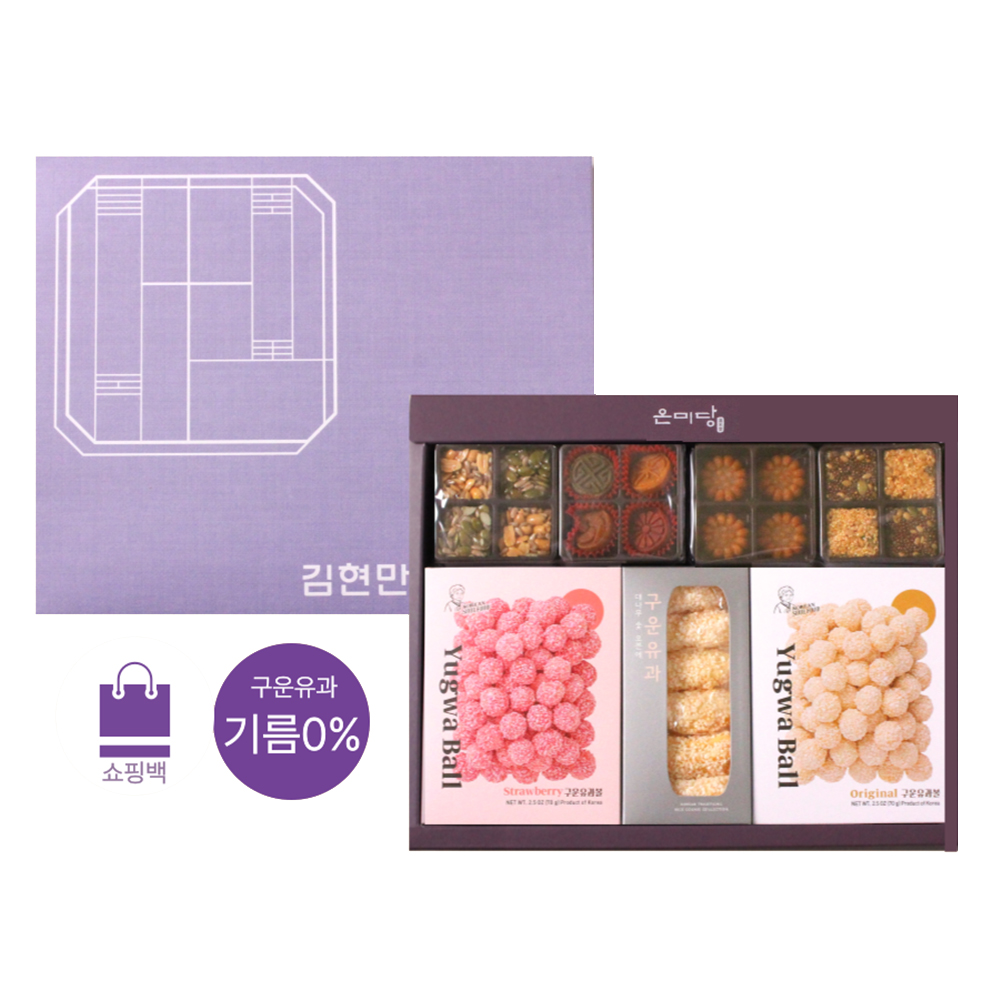 유과(찹쌀,복분자딸기,단호박,),유과볼(딸기,조청),미니약과,4색강정(백년초,단호박,녹차,현미)