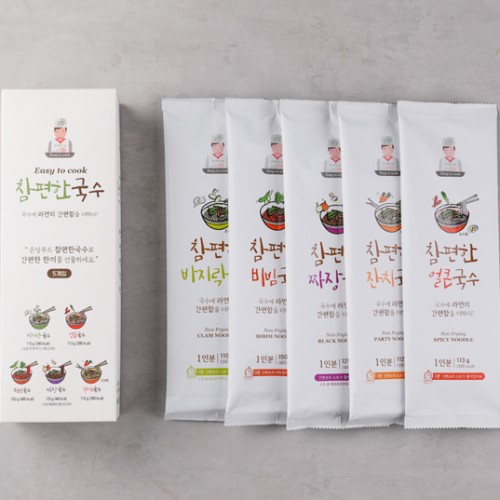 바지락 국수, 얼큰 국수, 잔치 국수,비빔 국수, 짜장 국수 각 1개씩