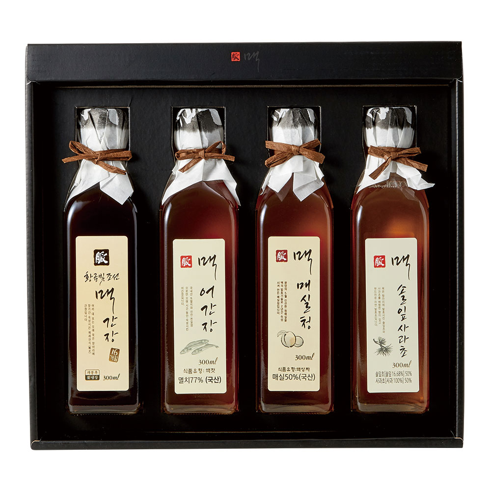 맥어간장 300ml, 맥솔잎사과초 300ml, 황금빛맥간장 300ml, 맥매실청 300ml